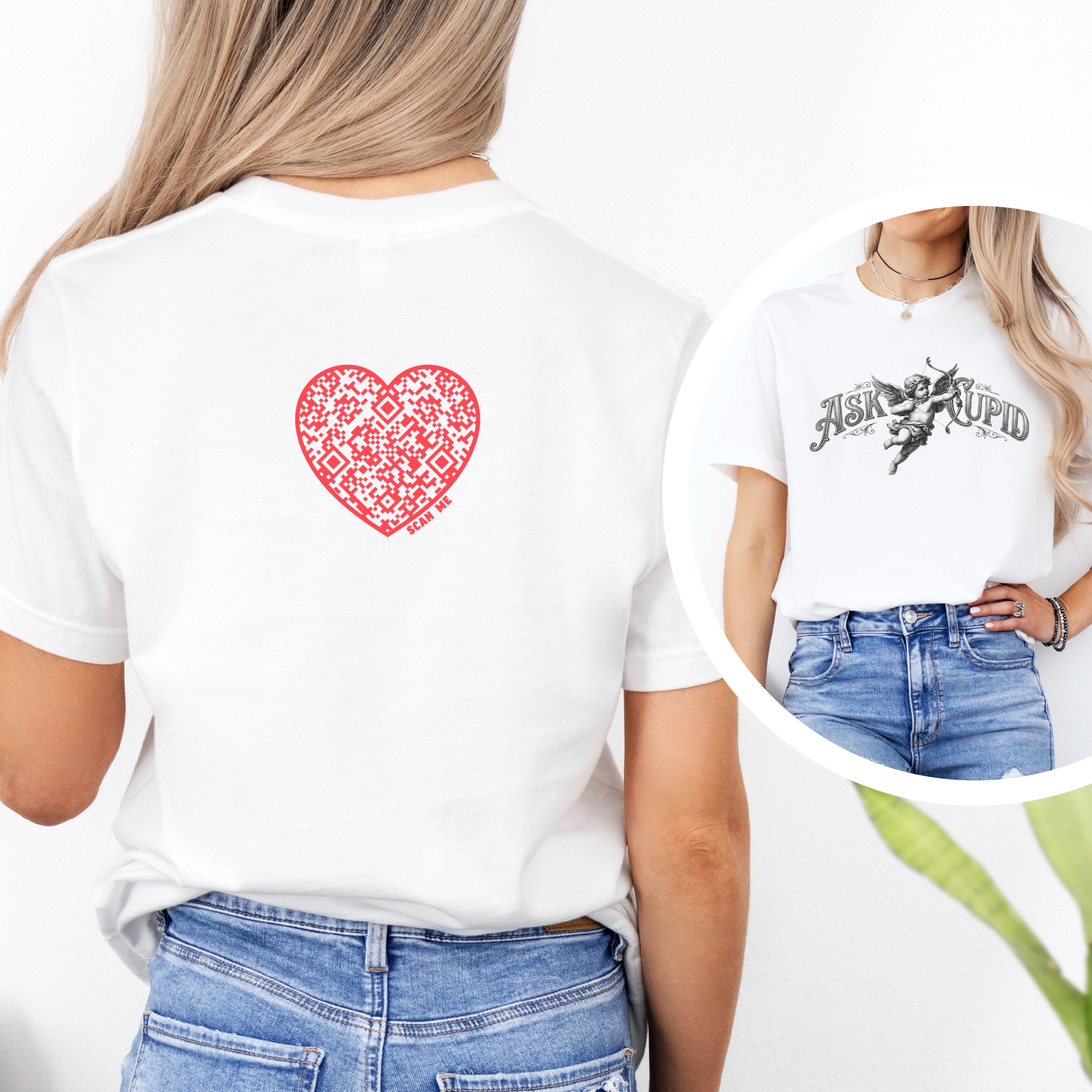 Ask Cupid™ QR Code T-Shirt in White – Let Cupid Answer