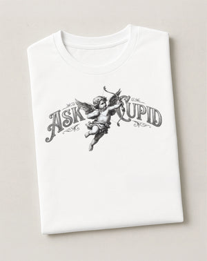 Ask Cupid™ is a playful, interactive t-shirt that turns curiosity about love into a fun experience. Inspired by classic fortune-telling games but reimagined for today, the shirt features a charming Cupid graphic on the front and a heart-shaped QR code on the back that invites people to ask their burning questions about love, dating, friendship, or everyday decisions.