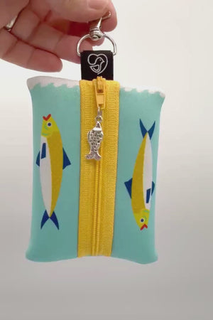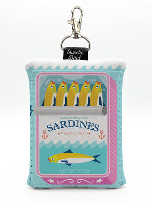 Add a splash of retro charm to your everyday carry with this Sardines Neoprene Pouch. Inspired by vintage sardine tin artwork, this playful zip pouch features durable neoprene construction, a secure zipper, and a lobster-claw clip for easy attachment to bags or keys.