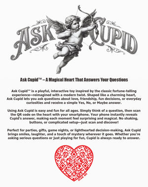 Perfect for parties, gifts, game nights, or lighthearted decision-making, Ask Cupid brings smiles, laughter, and a touch of mystery wherever it goes. Whether you're asking serious questions or just playing for fun, Cupid is always ready to answer.