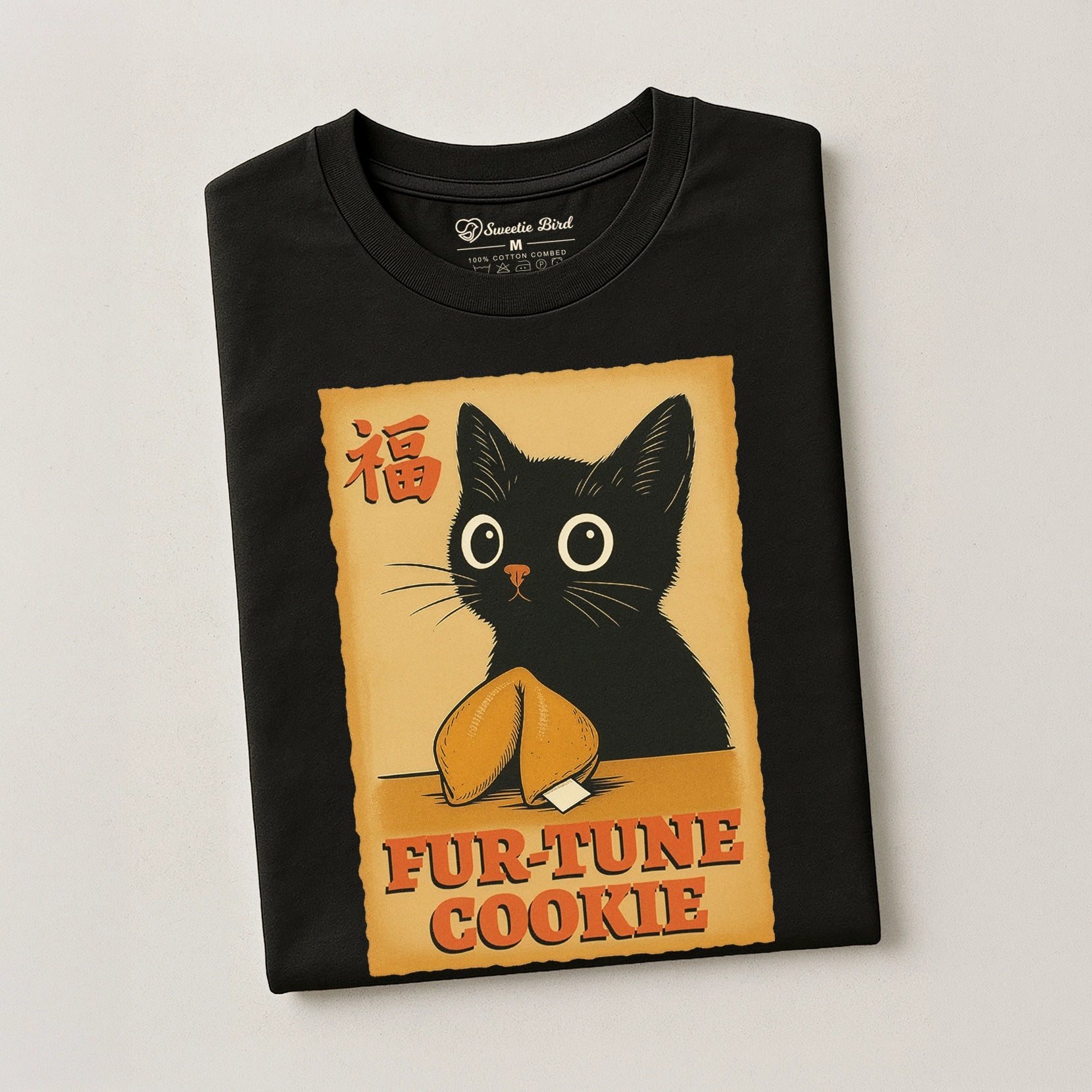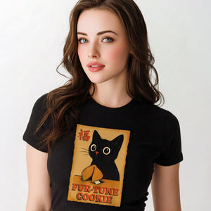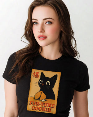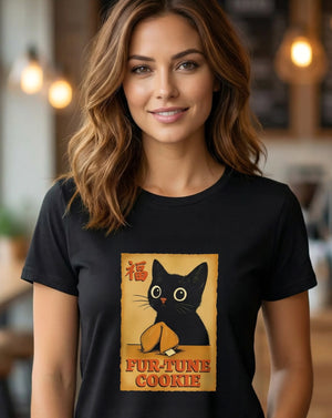 Invite luck with a wink and a little mystery. The Fur-Tune Cookie Tee blends charm, humor, and symbolism into a striking graphic that feels both nostalgic and modern. Featuring a wide-eyed black cat with a fortune cookie, this design nods to curiosity, fate, and the unexpected surprises life has to offer — all wrapped in a bold, illustrative style that stands out without shouting.