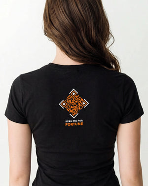 What sets this tee apart is the interactive QR-code on the back, designed to reveal a unique fortune when scanned — turning the shirt into an experience, not just a look. It’s playful, unexpected, and adds a layer of meaning you carry with you.